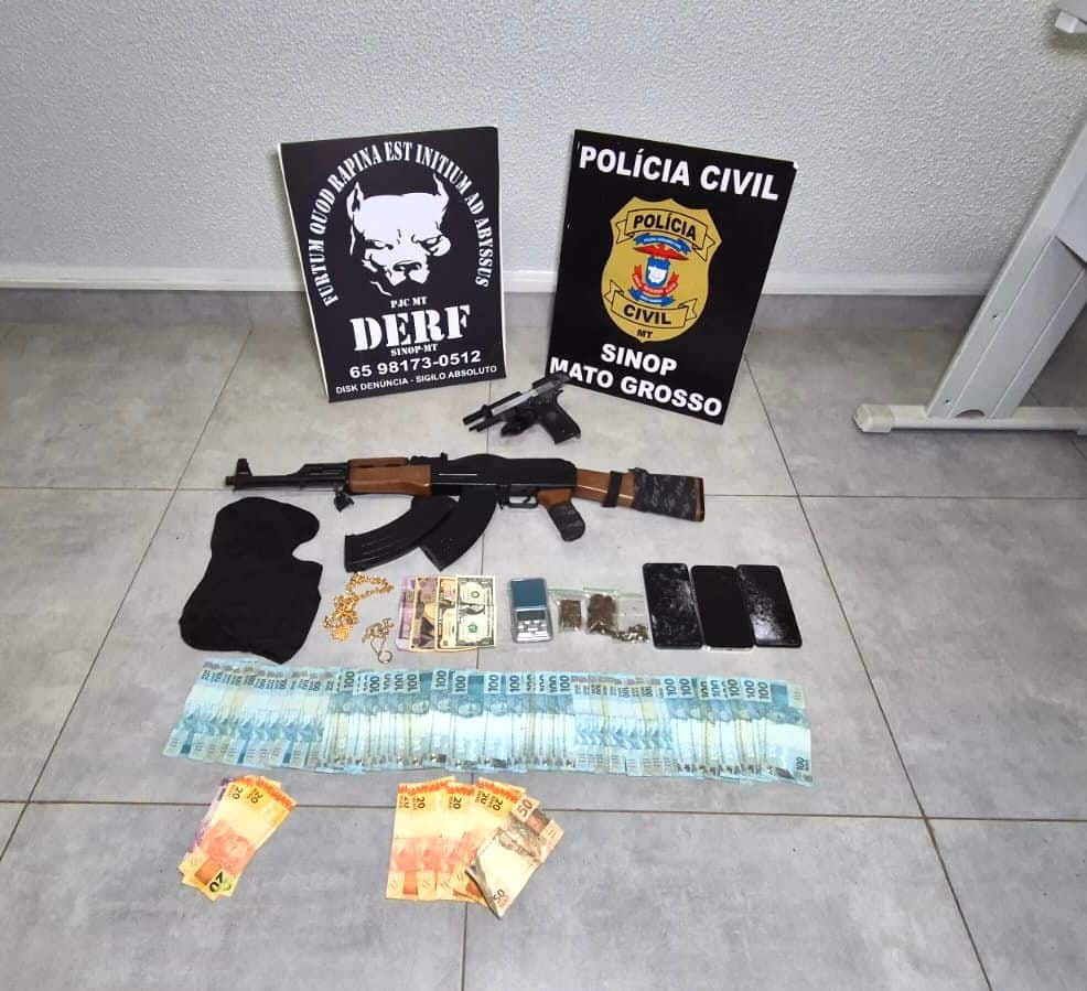 Investigadores da Delegacia Especializada de Roubos e Furtos (DERF) da Polícia Civil prenderam, na tarde de ontem, em Sinop, dois envolvidos em um grave assalto ocorrido na madrugada do mesmo dia em Cláudia, onde uma família foi rendida na região central do município.