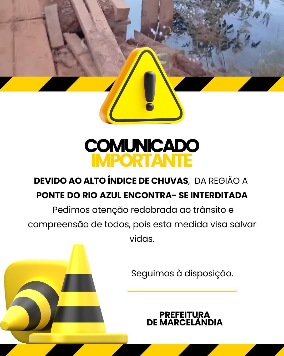 A Prefeitura Municipal de Marcelância divulgou em suas redes sociais o aviso de interdição da Ponte de acesso à Cláudia.